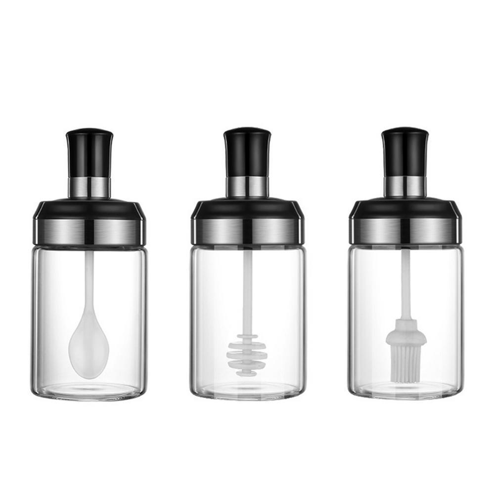 O pote para armazenar condimentos como açúcar, sal, azeite, mel e etc, traz consigo a colher, pincel ou até mesmo colher de mel para facilitar na hora do preparo do alimento!